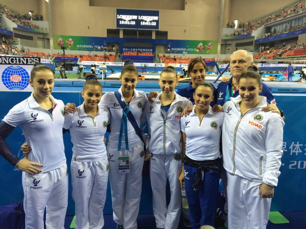 Nella gara a squadre, l’Italia si piazza al terzo posto mentre l’atleta, nonostante arrivi alla finale nel corpo libero, chiude la competizione al quarto posto.